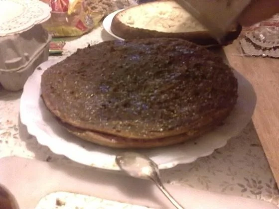 ШАГ 5 Каждый готовый корж разрезать еще на 2 тонких.