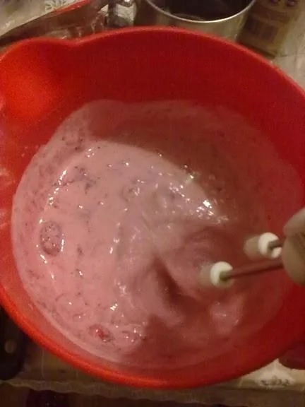 ШАГ 7 Как делать крем: замороженную клубнику промыть, мелко нарезать и смешать с йогуртом (лучше использовать блендер, если есть).