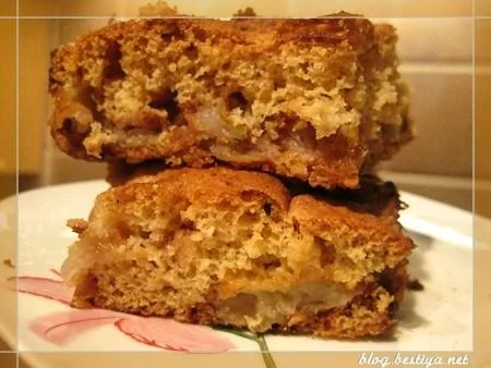 ШАГ 4 Форму для выпечки смазать маслом, посыпать сухарями и уложить яблоки на дно. Залить тестом и выпекать около 40 минут при средней температуре. Готовность пирога можно проверять зубочисткой или спичкой — пирог готов, когда на зубочистку не налипает тесто при погружении ее вглубь пирога.