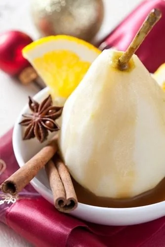 ШАГ 3 Добавьте груши, сверху закройте пергаментом и доведите до кипения. Уменьшите огонь и готовьте, иногда переворачивая груши, примерно 20 минут до мягкости, но не давая грушам развалиться. Переложите груши в миску.