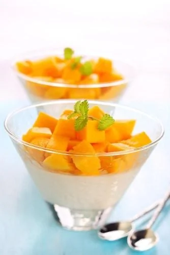 ШАГ 2 Тем временем, миксером взбейте рикотту и разложите по креманкам. Сверху выложите манго и сразу подавайте.