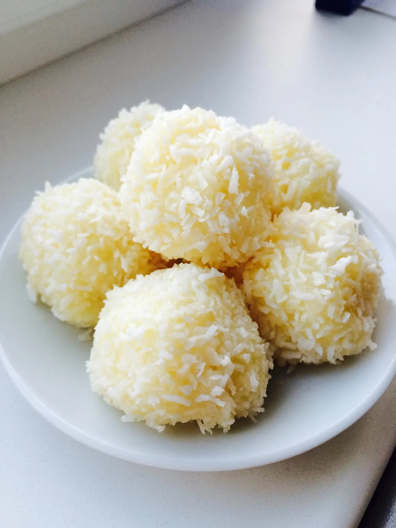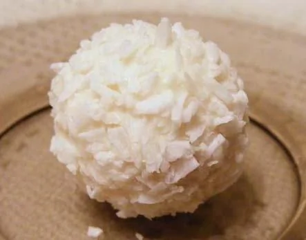 ШАГ 7 Обваливаем конфету в оставшейся кокосовой стружке.