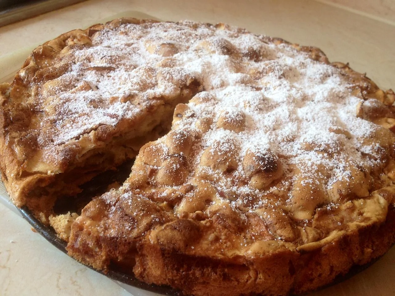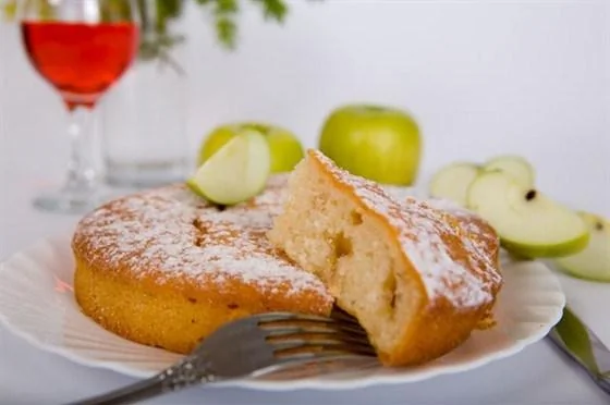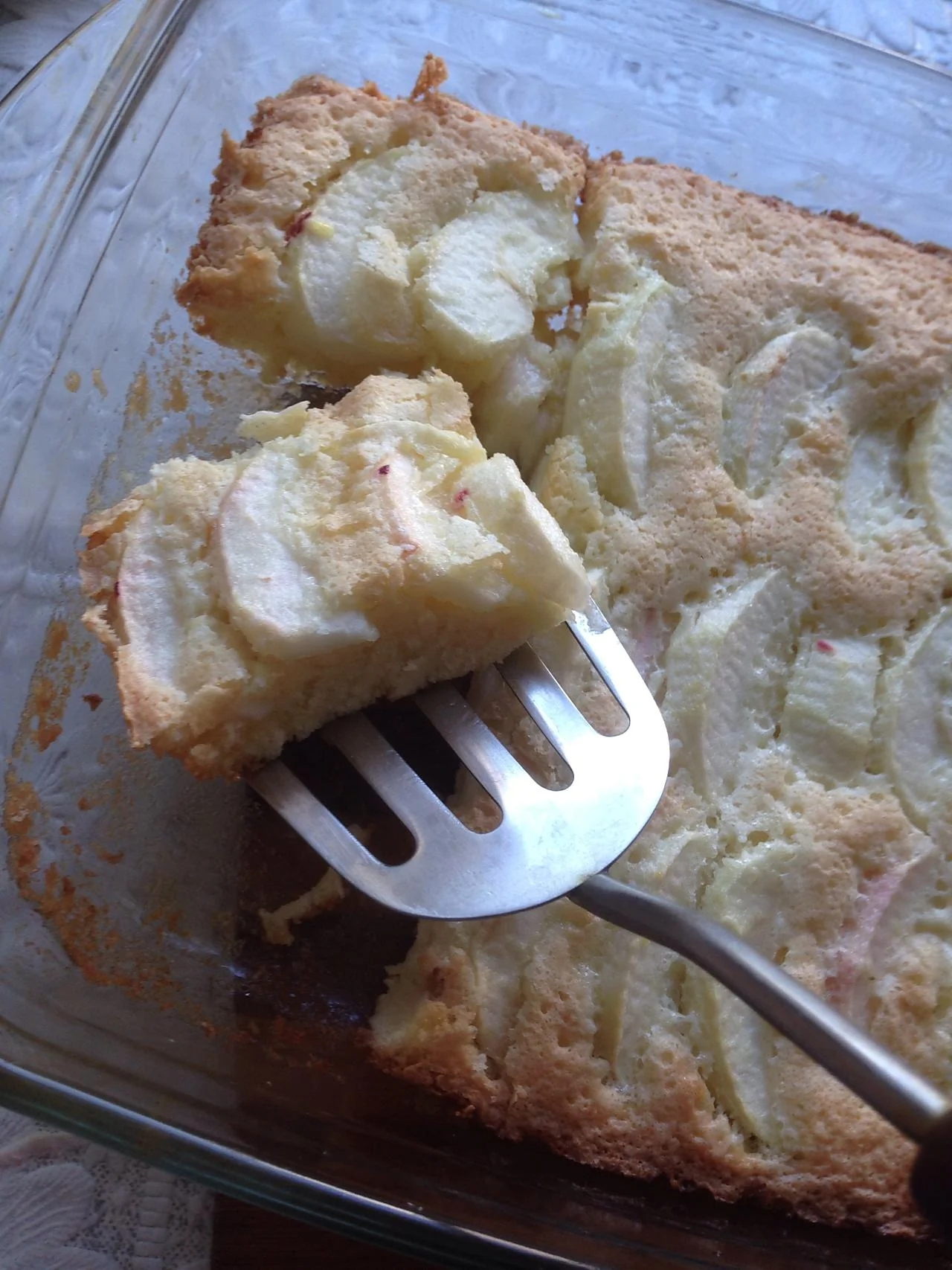 ШАГ 3 Форму смазать сливочным маслом. Выложить на дно яблоки, сверху залить тестом и поставить в духовку.