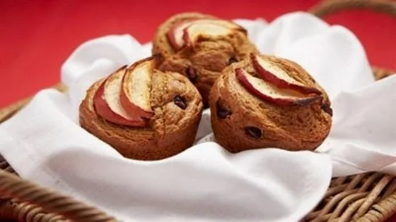 ШАГ 5 Добавить в тесто 2 тертых яблока. Выложить тесто в формы для кексов, украсить нарезанными яблоками и выпекать при температуре 150 градусов 40 минут.