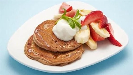 Блины из спельтовой муки со свежими фруктами и натуральным йогуртом