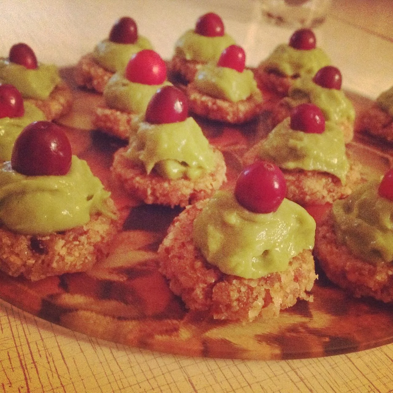 ШАГ 3 Из ореховой массы сформируйте кружки диаметром в 5 см и высотой в 0,5 см. Выложите на каждый кружок по ложке крема и украсьте клюквой.