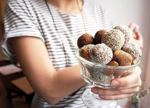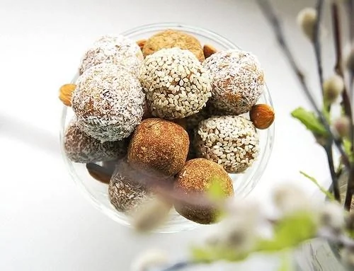 ШАГ 2 Миндаль, финики и остальные ингредиенты хорошо смешайте до состояния липкого теста. Скатайте шарики (размером чуть меньше мячика для пинг-понга) и обкатайте их в кокосовой стружке, кунжуте или корице.