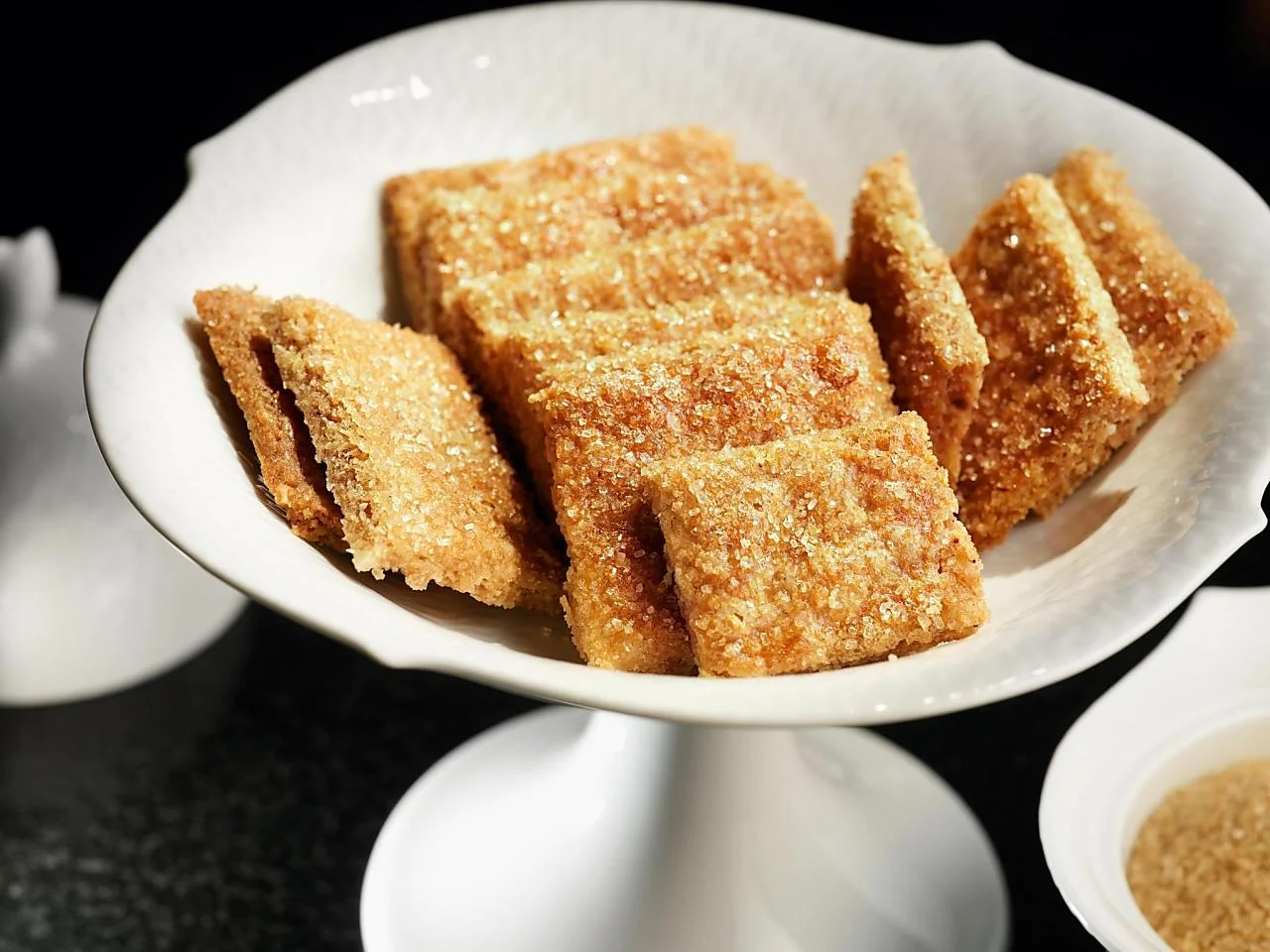 ШАГ 5 Перед тем как поставить противень в прогретую до 200 градусов духовку, нужно смазать тесто яичным белком и посыпать оставшимся коричневым сахаром. Круглым ножом для пиццы нарезать лист теста на квадраты — и выпекать пятнадцать минут.
