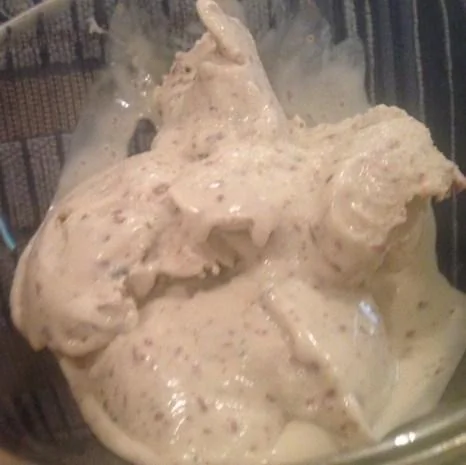 ШАГ 6 Процедите крем через сито, чтобы удалить мятные листья. Если крем слишком густой для вашего сита, процеживайте постепенно, проталкивая крем столовой ложкой. Процедите в чистую кастрюлю.