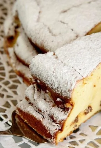 ШАГ 1 Смешайте яйца, творог, сахар, сметану, изюм, цедру, добавьте ром и влейте соду, погашенную уксусом.