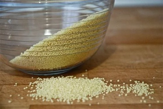ШАГ 1 Залить кускус кипятком и оставить на 30 минут.