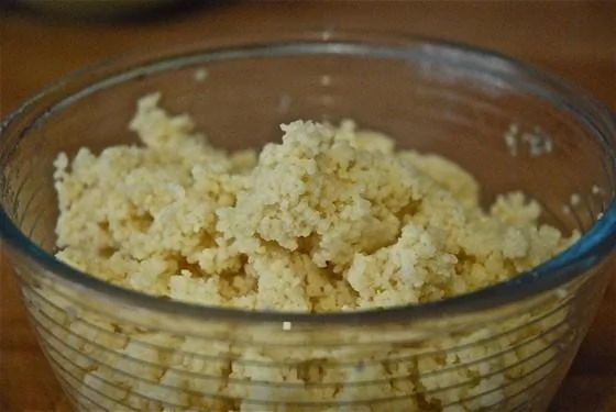 ШАГ 3 Соединить кускус со сливочным малом, взбитым яйцом и солью.