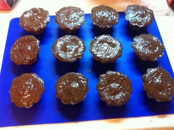 ШАГ 9 Темным шоколадом смазать поверхность готовых кексов и дать чуть застыть.