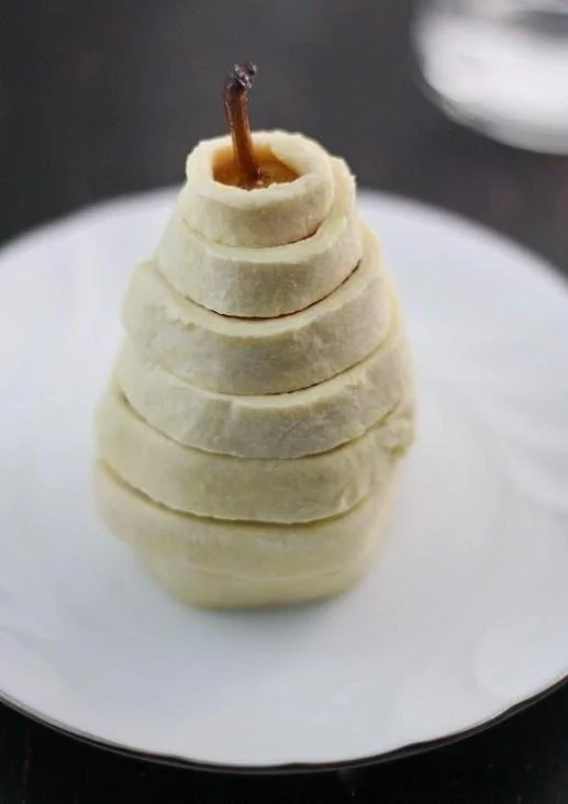 ШАГ 6 На небольшом огне вскипятите сироп и вылейте его в тарелку. Прямо в сироп выложите грушу и подавайте.