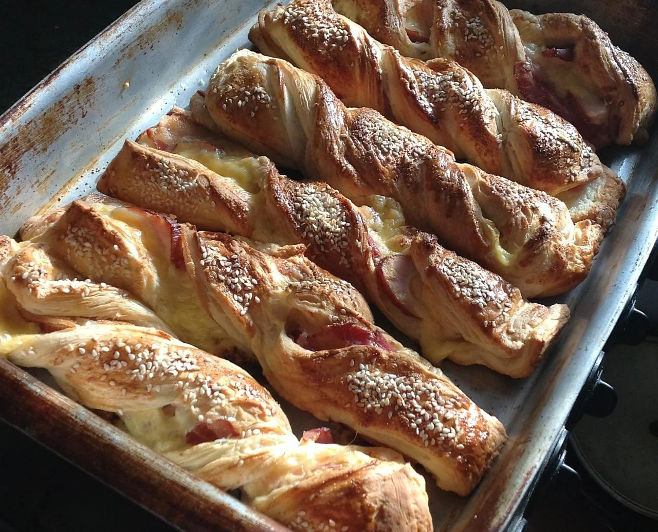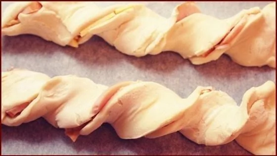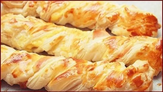 Слоеные косички с курицей и сыром
