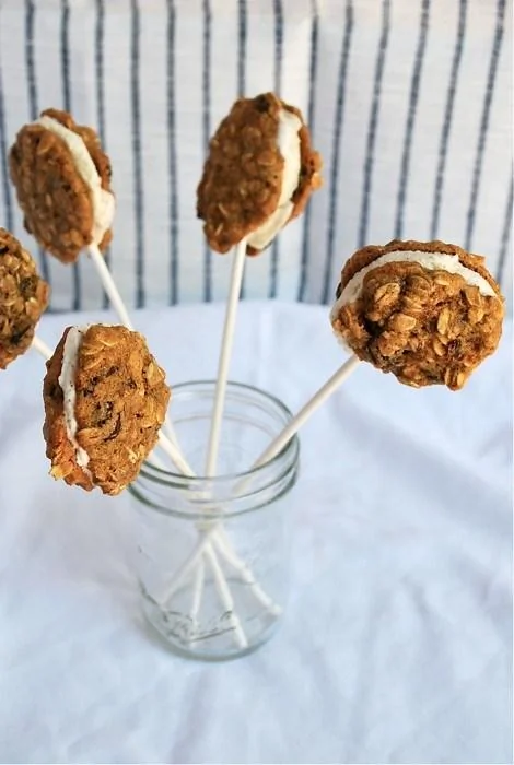 Мини-сэндвичи с овсяным печеньем и коричным мороженым на палочке