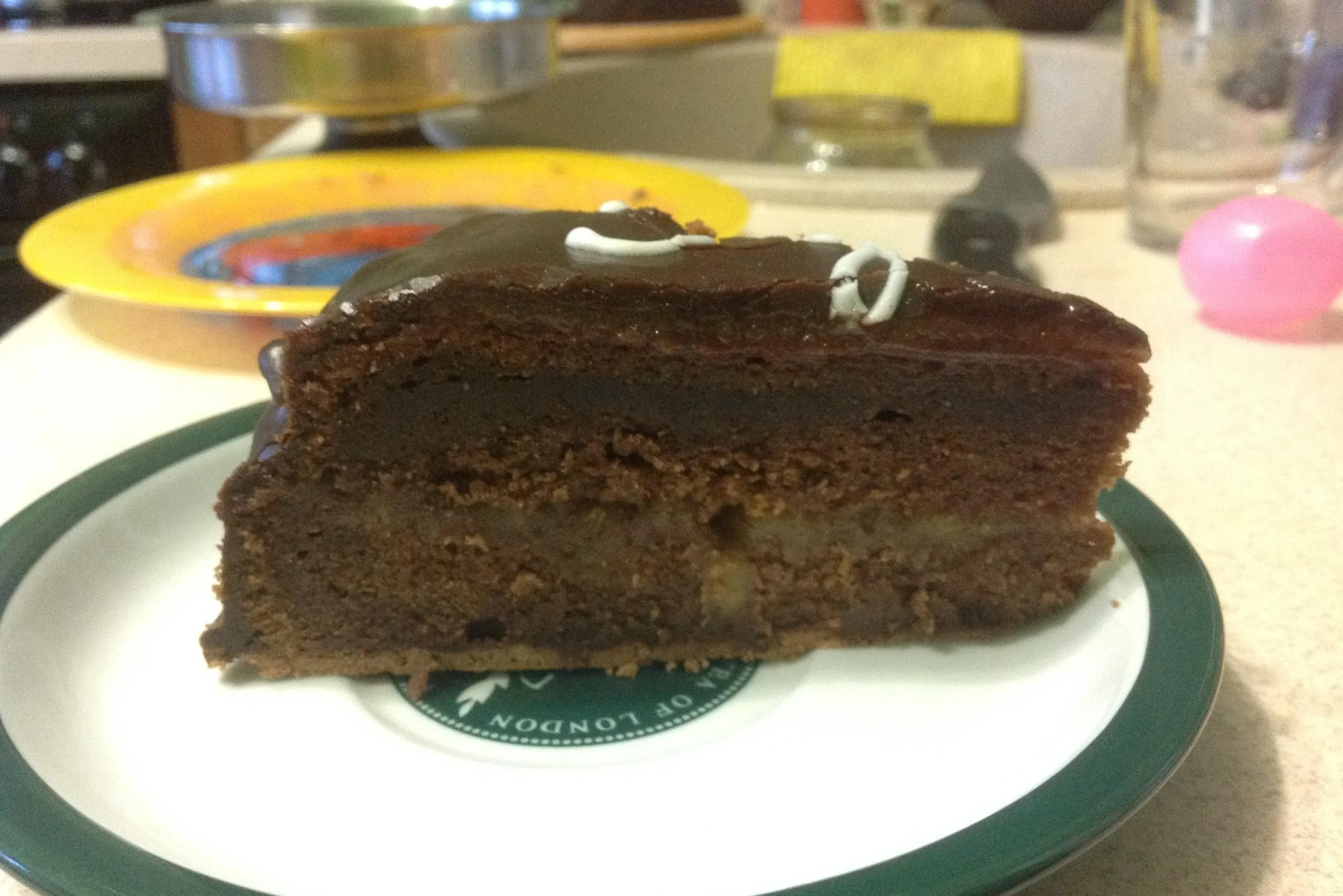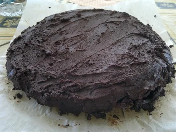 ШАГ 3 Разогреть духовку до 180 градусов. Смазать жиром круглую форму для торта диаметром 23 см. Проложить пергаментом. Перелить смесь в подготовленную форму, запекать около часа до готовности.