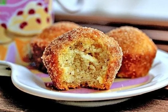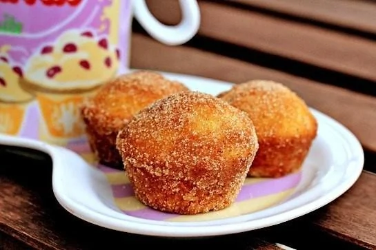 ШАГ 5 Даем капкейко-пончикам чуть остыть. Затем растапливаем масло или маргарин (оставшиеся 60 грамм), и смешиваем отдельно сахар (70 грамм) с корицей для присыпки.