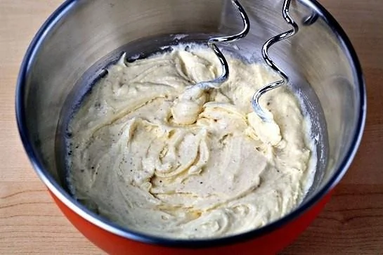 ШАГ 2 Взбиваем вместе сахар (100 грамм, остальное для присыпки), масло ( 60 грамм), мускатный орех, молоко, разрыхлитель и муку.