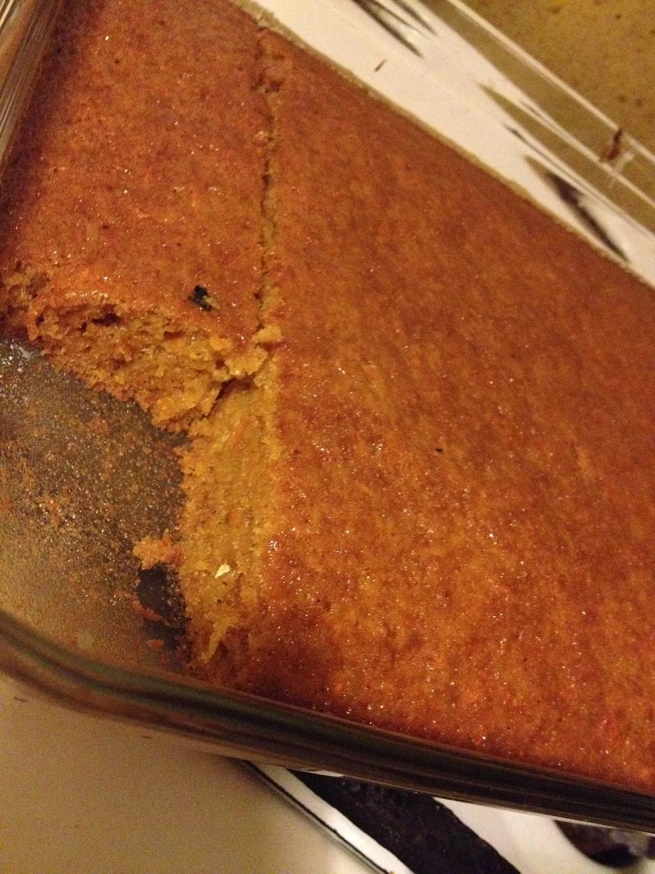 ШАГ 1 Натереть морковь на терке. Просеять муку, смешать ее с корицей, содой и разрыхлителем, затем половину муки смешать с тертой морковью.