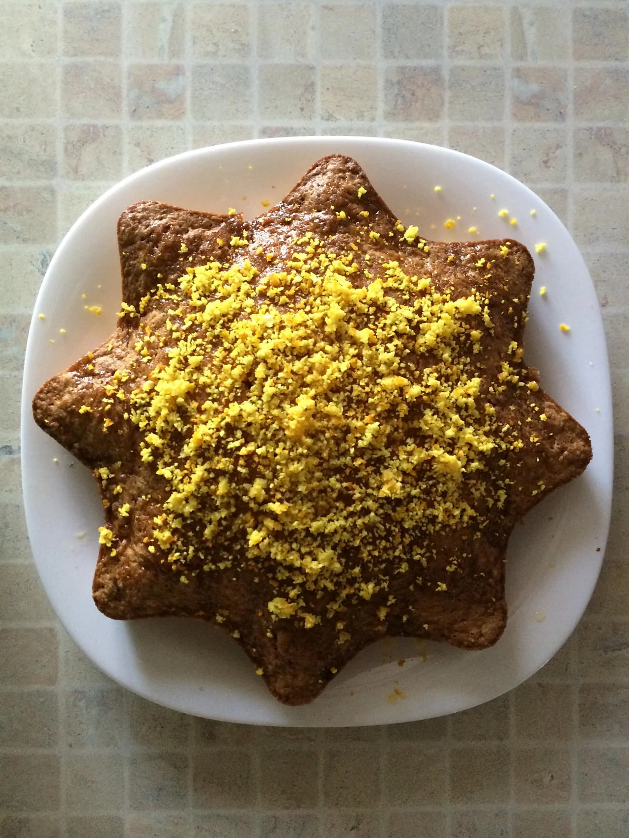 ШАГ 4 Натереть апельсиновую цедру. Смешать сахарную пудру с апельсиновым соком, смазать готовый морковный торт — и посыпать его апельсиновой цедрой.