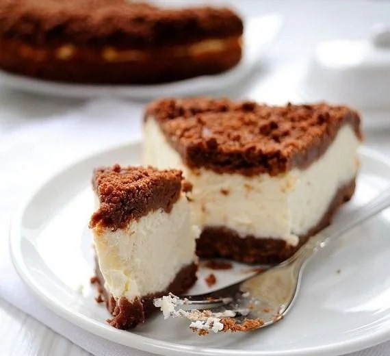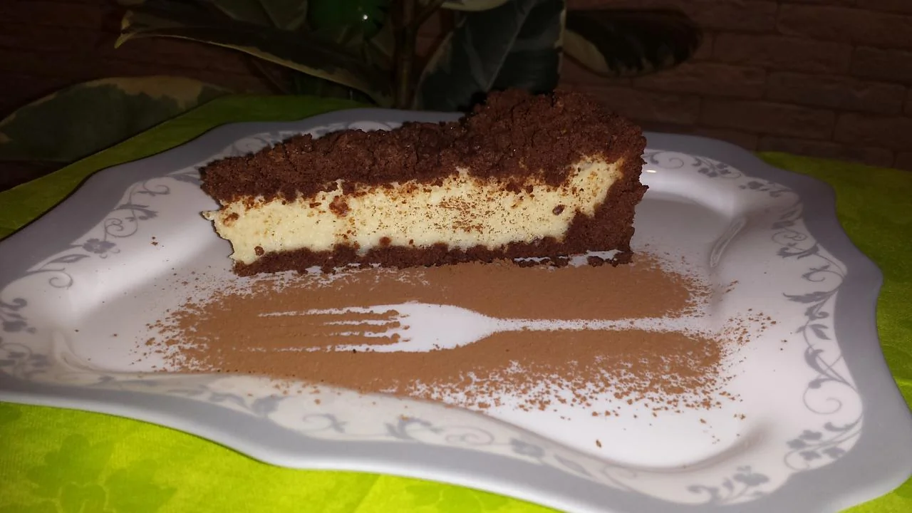 ШАГ 6 На дно формы выложить большую часть крошки, сверху вылить начинку, посыпать равномерно оставшейся крошкой.