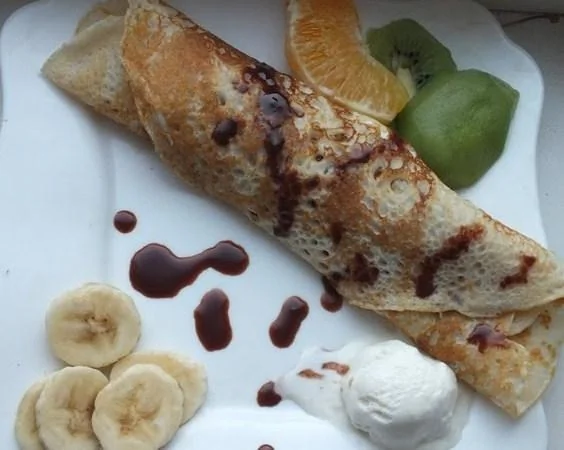 Блинчики с мороженым и фруктами