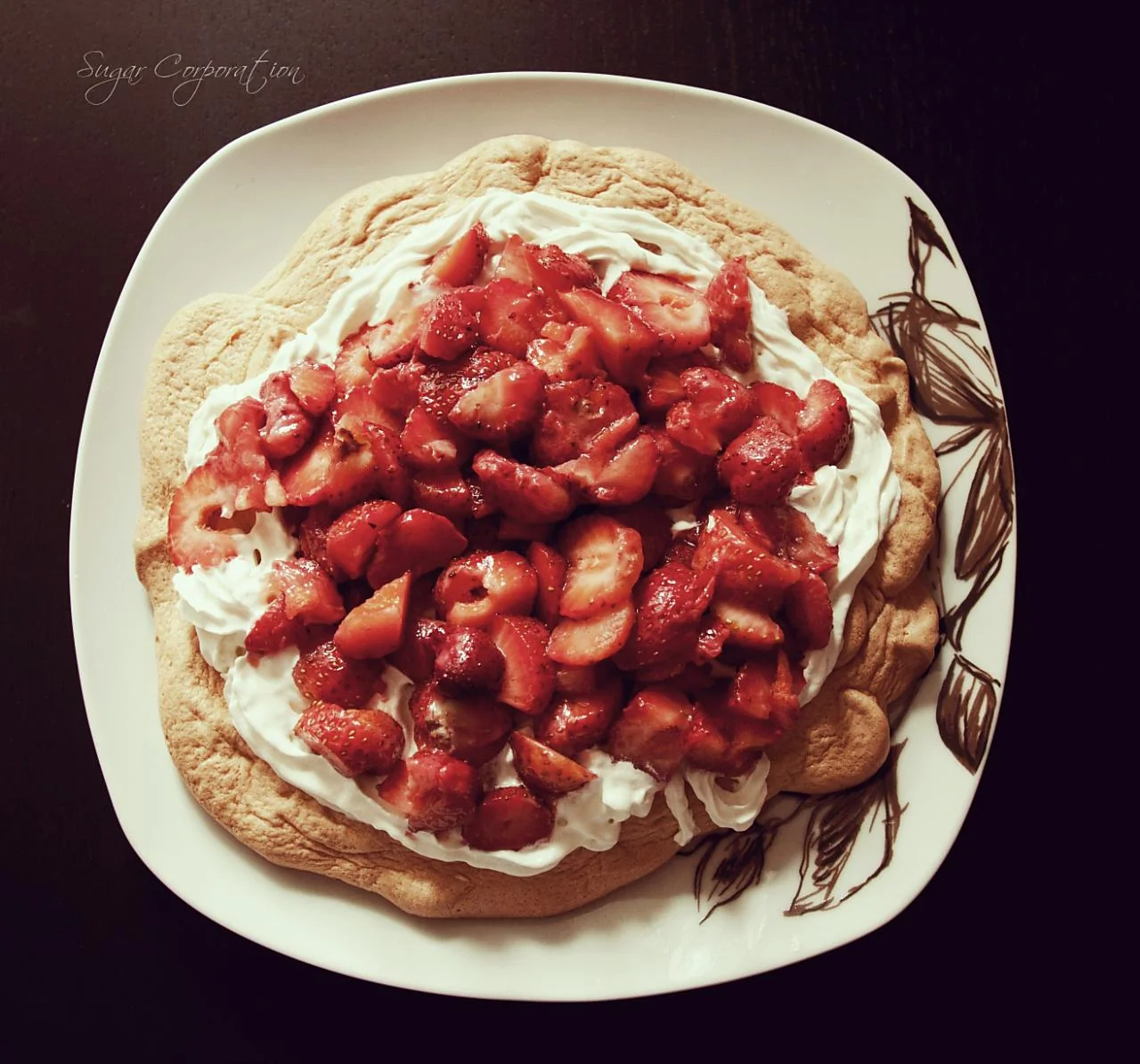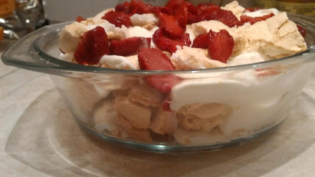 Торт «Павлова» со сливочным кремом и клубникой