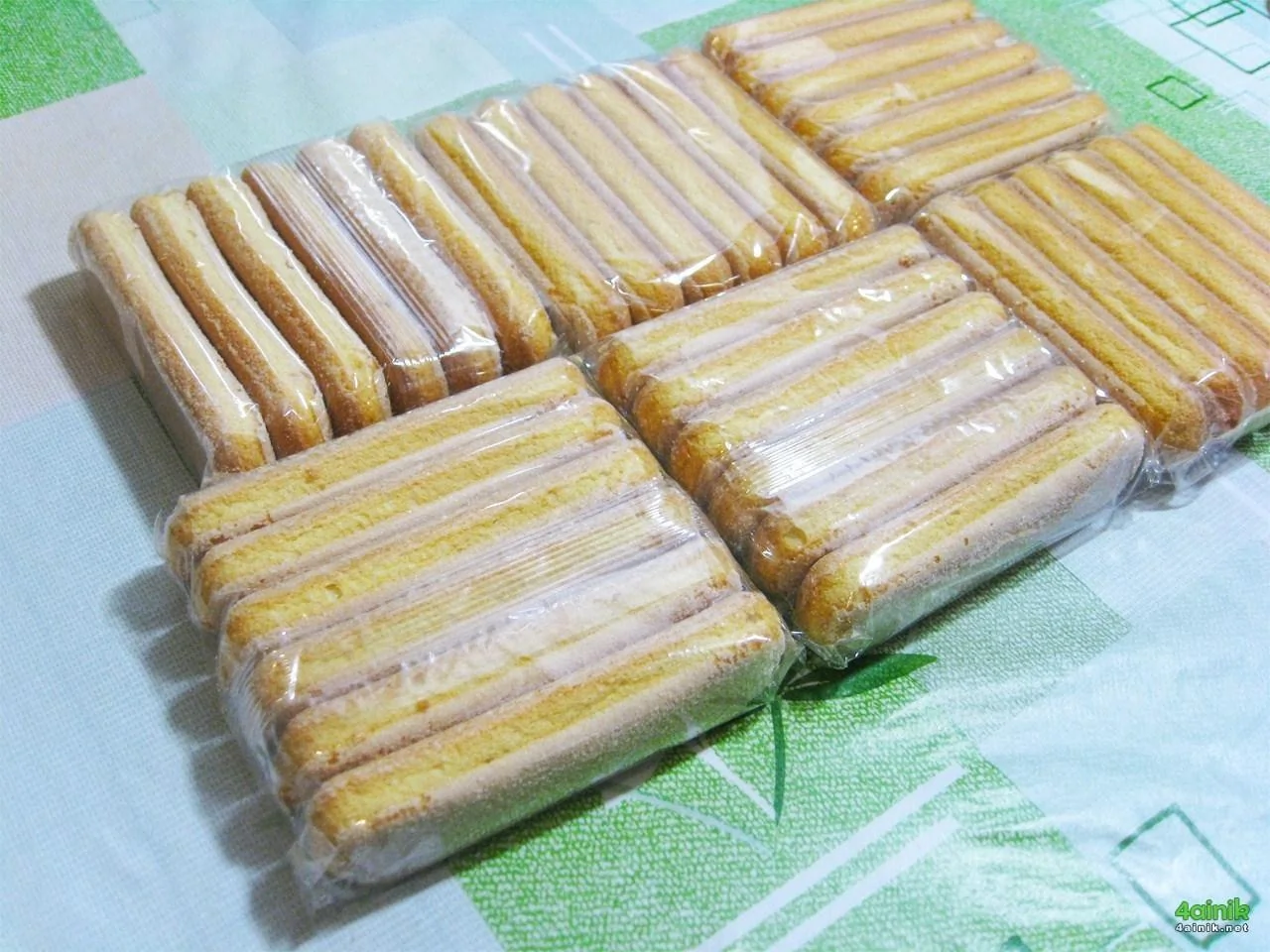 ШАГ 7 Печенье обмакивать в кофейно-коньячную смесь очень быстрым движением — по секунде с одной и другой стороны. Делать это быстро, иначе печенье разбухнет и развалится. Каждую печеньку обмакнуть в кофе и выложить на дно формы.