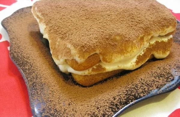 ШАГ 11 После пропитки посыпать тирамису какао через ситечко.