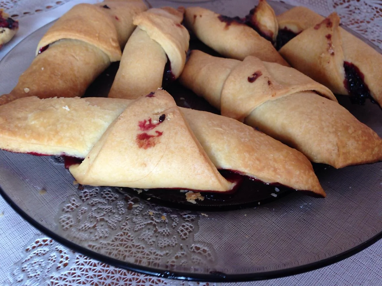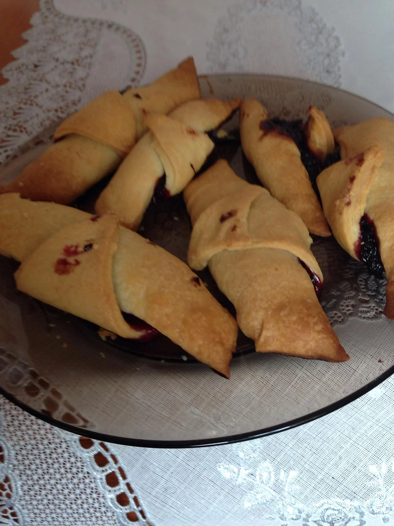 ШАГ 4 В основание каждого треугольника поместите джем и сверните рулетами.