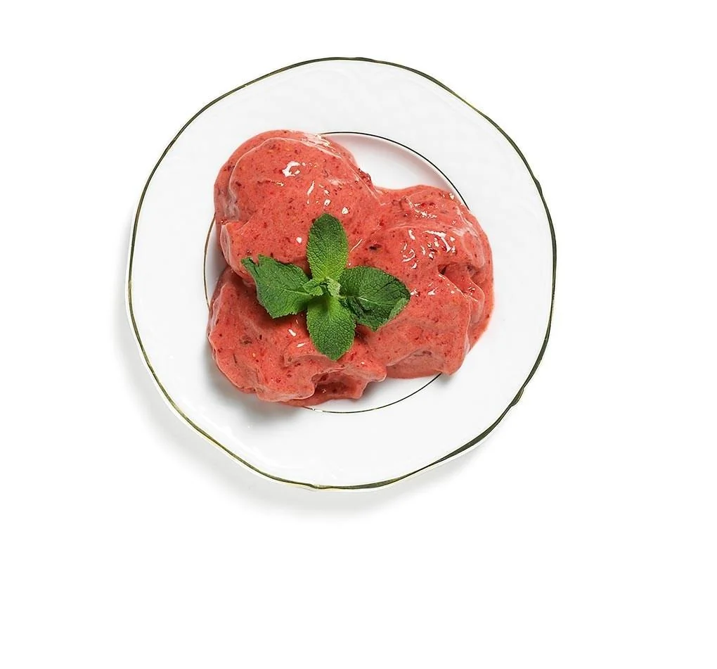 ШАГ 3 Обледеневший банан вместе с замороженными ягодами пробить в блендере. Это лучше делать в три-четыре приема: сначала все порубить на мелкие кусочки, а когда начнет образовываться «сливочная» пена, нужно остановить блендер и провернуть несколько раз бананово-ягодную смесь ложкой. Сорбет готов, когда масса станет совершенно однородной.