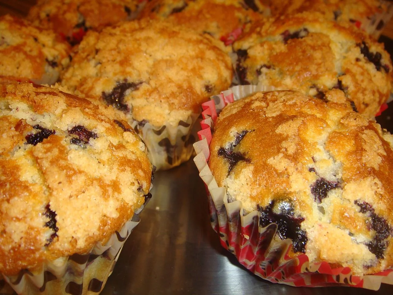 ШАГ 5 Маффины посыпать крошками теста, сделанного из 100 грамм сахара, 40 грамм муки, 55 г рамм холодного сливочного масла и 5 грамм корицы.