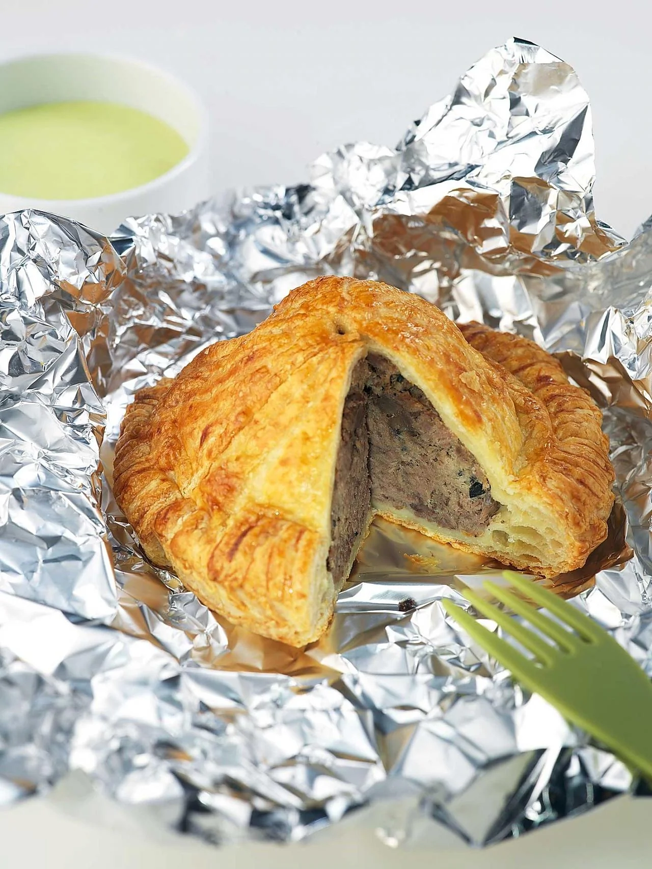 ШАГ 8 Смешать майонез с васаби, йогуртом и лимонным соком. Пирожок подавать в холодном виде с этим соусом.