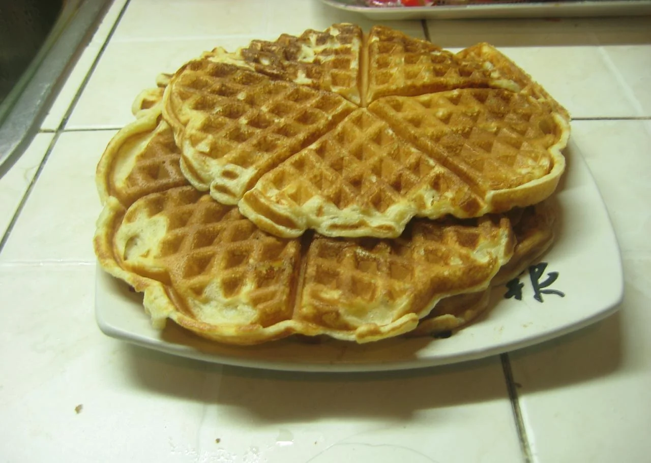 ШАГ 6 Готовые вафли положить на огнеупорную тарелку и поставить в духовку при температуре 100 градусов, чтобы вафли оставались горячими, пока готовится следующая порция. Подавать с сиропом или другой начинкой.