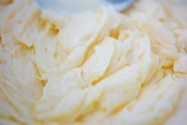 ШАГ 1 Размягченное масло перемешать с желтками до кремообразной консистенции.