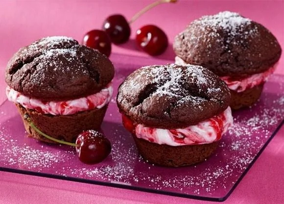 Шоколадные кексы с творожно-вишневой начинкой