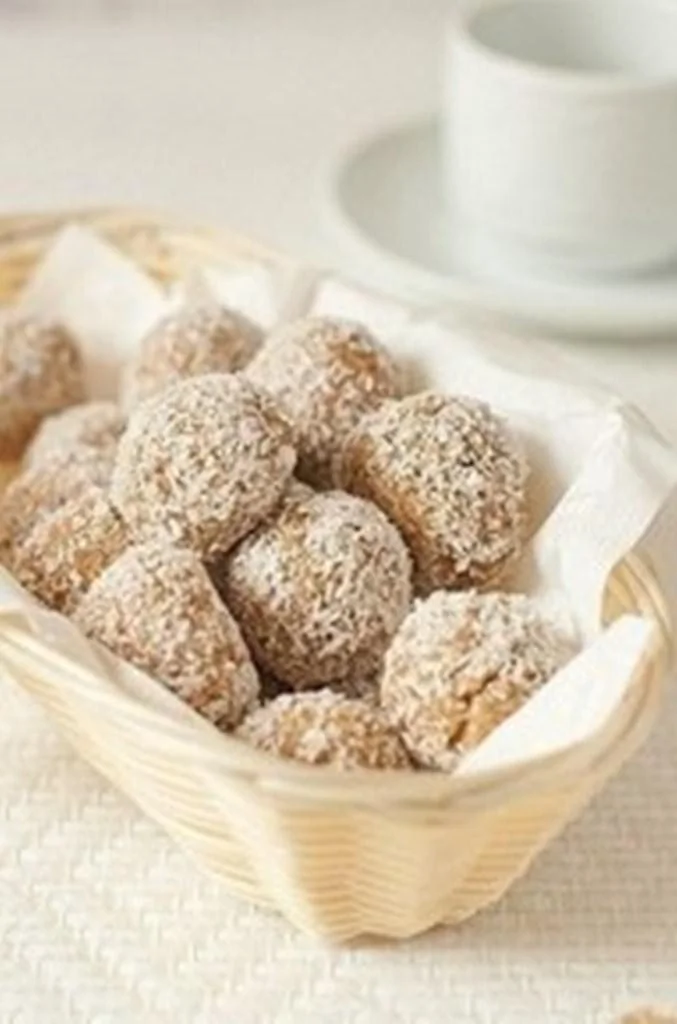 ШАГ 4 Сформировать шарики, обвалять их в маке, орехах или стружке, слегка приплющить и выложить на противень, застеленный бумагой для выпечки.