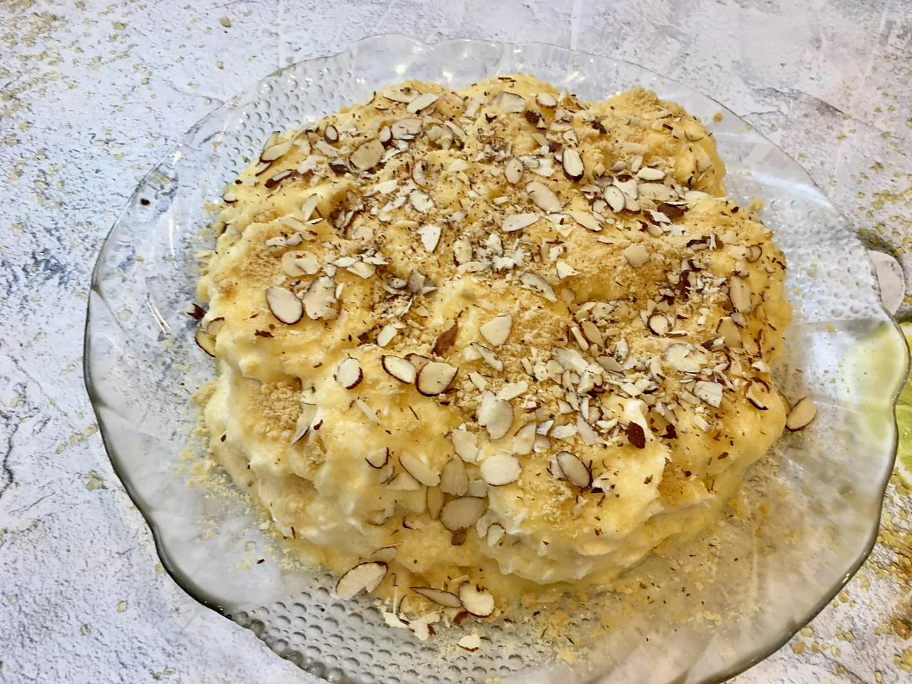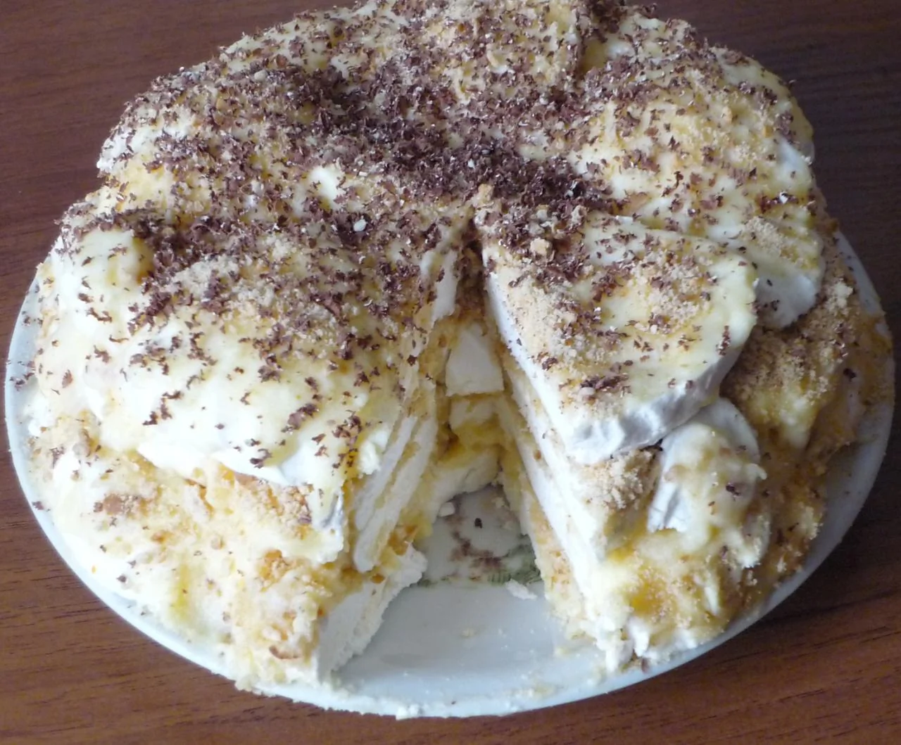 ШАГ 6 Украсьте торт орешками или тертым шоколадом и поставьте в холодильник часов на 12, чтобы слои пропитались и как следует слиплись.