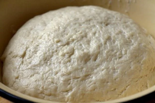 ШАГ 5 Через 30 минут тесто перемешать, смазав руку растительным маслом.