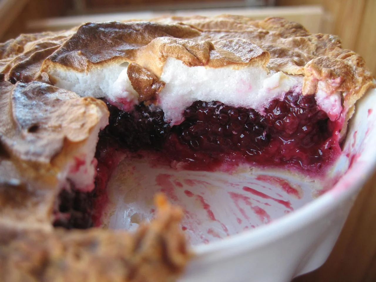 Слоеный мини-тарт с ежевикой и шапкой из запеченного белкового крема