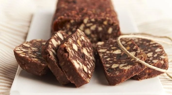ШАГ 6 Готовую колбаску нарезать кусочками.