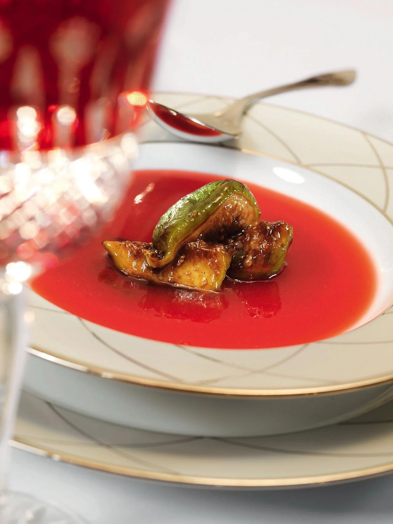 ШАГ 4 Налить кисель в глубокие тарелки, положить туда обжаренный инжир и подавать.