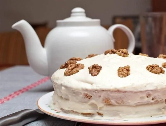 ШАГ 2 Нагрейте духовку до 200 градусов. Смажьте форму для выпекания маслом или проложите пергаментной бумагой. Вылейте тесто и выпекайте корж примерно 25 минут. Получившийся корж остудите и разрежьте по горизонтали на две части.