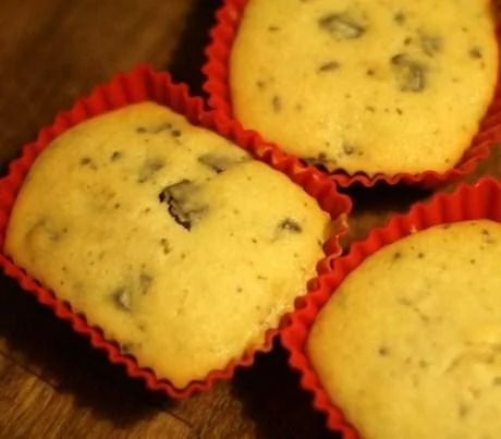 ШАГ 2 Небольшие формочки смазать растительным маслом, разлить тесто, не заполняя формы целиком, добавить в тесто шоколад.