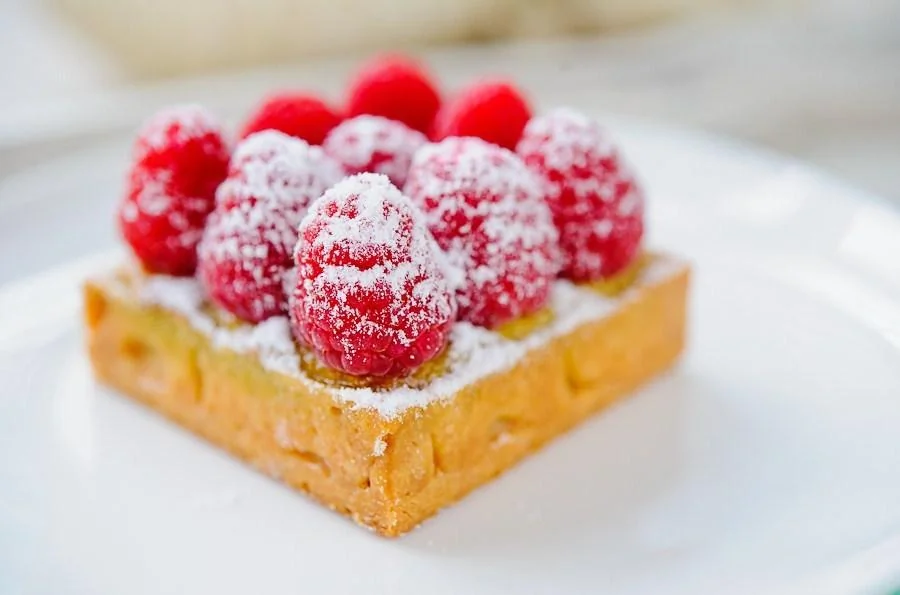 ШАГ 4 Украшаем свежей малиной, посыпаем сахарной пудрой.