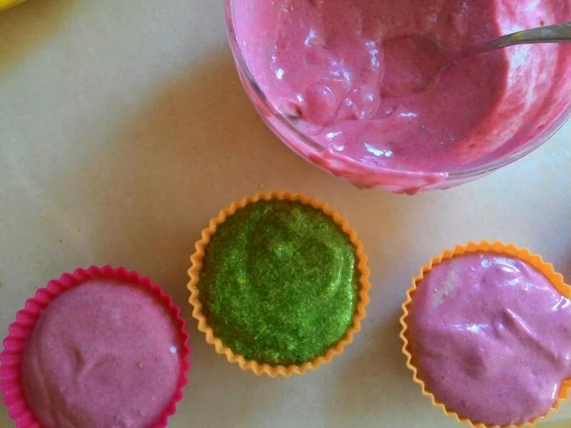 ШАГ 5 Жидкое тесто выложить в формочки для маффинов, примерно, по 2 столовые ложки в каждую формочку. Выпекать при температуре 180–200 градусов 20–25 минут.