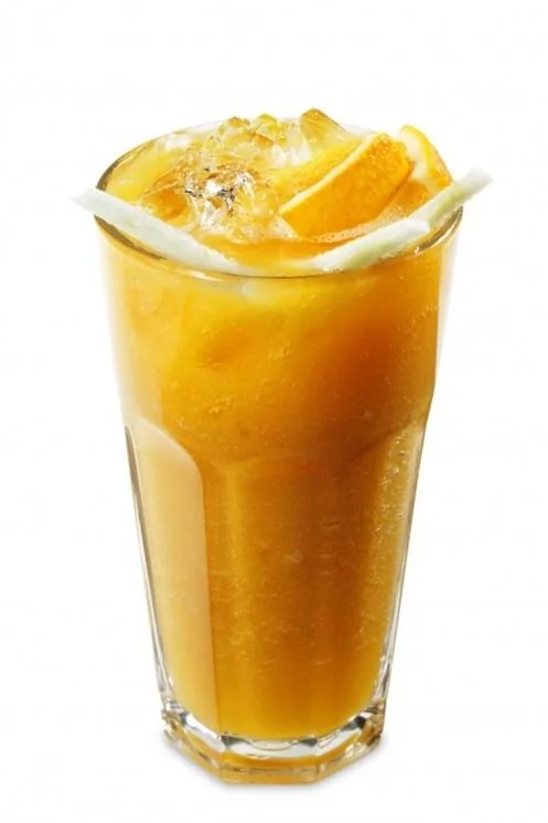 ШАГ 2 Разлить в стаканы, в каждый насыпать немного цедры и положить по кубику льда. Пить через соломинку.