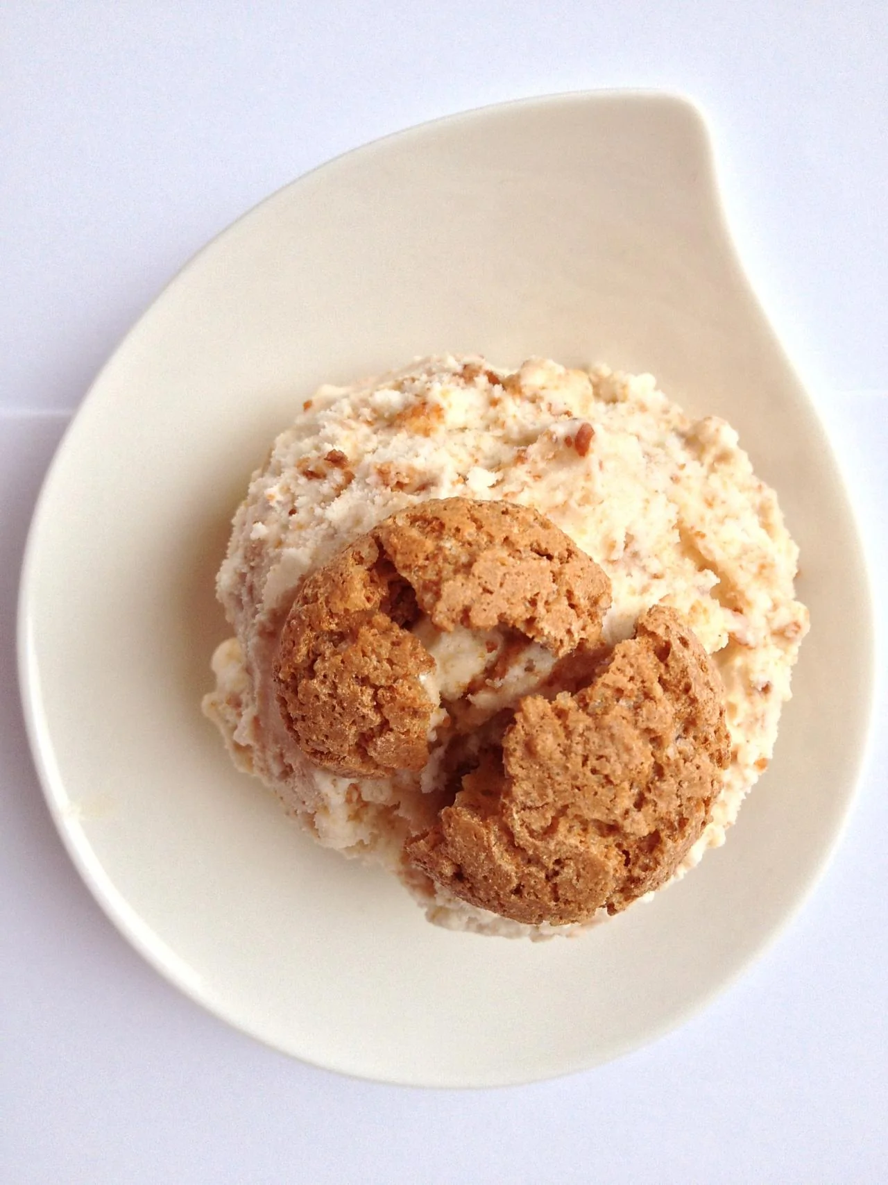 ШАГ 2 Доставьте крем из холодильника, перемешайте, перелейте во фризер для мороженого и прокрутите в соответствии с инструкцией минут 20–40. В последнюю минуту прокручивания добавьте мелко раскрошенное печенье амаретти. В конце прокручивания масса будет напоминать чуть подтаявшее мягкое мороженое. Наполните этой массой контейнер и отправьте в морозилку на 3–4 часа до застывания.