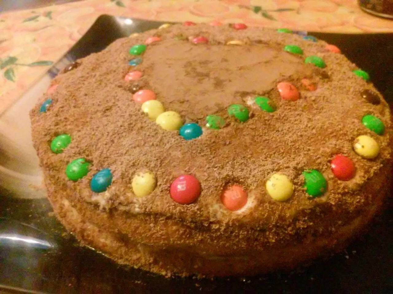 ШАГ 16 Верхний корж смазать второй половиной крема, накрыть четвертым коржом.